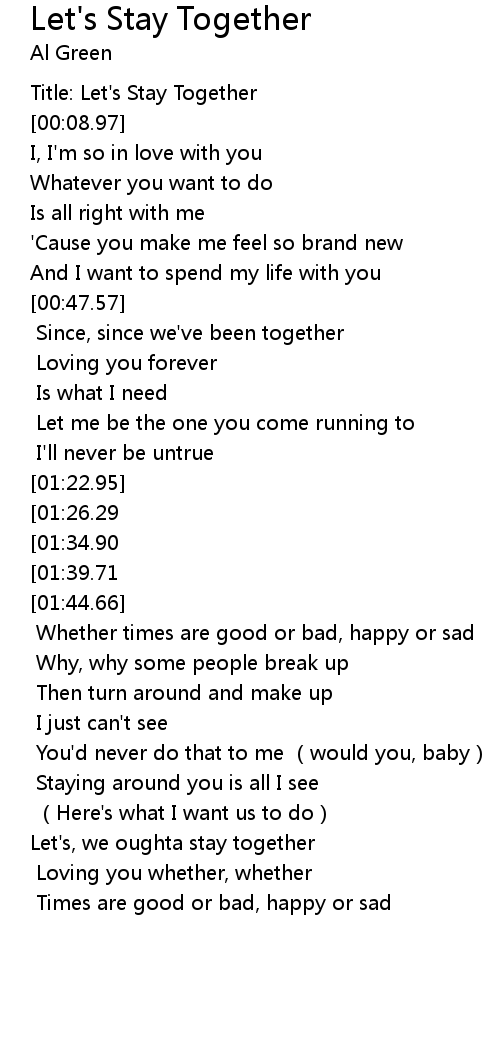 | [00:06.79] | Title: Let' s Stay Together |