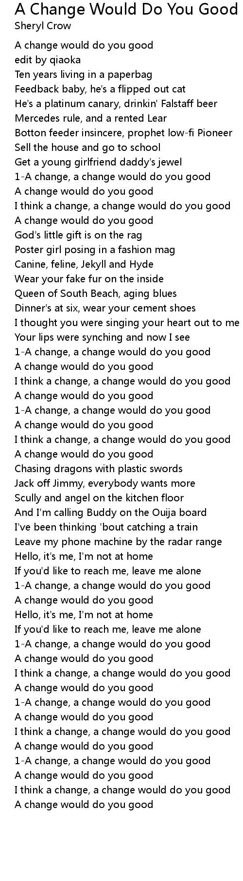 A change would do you good |