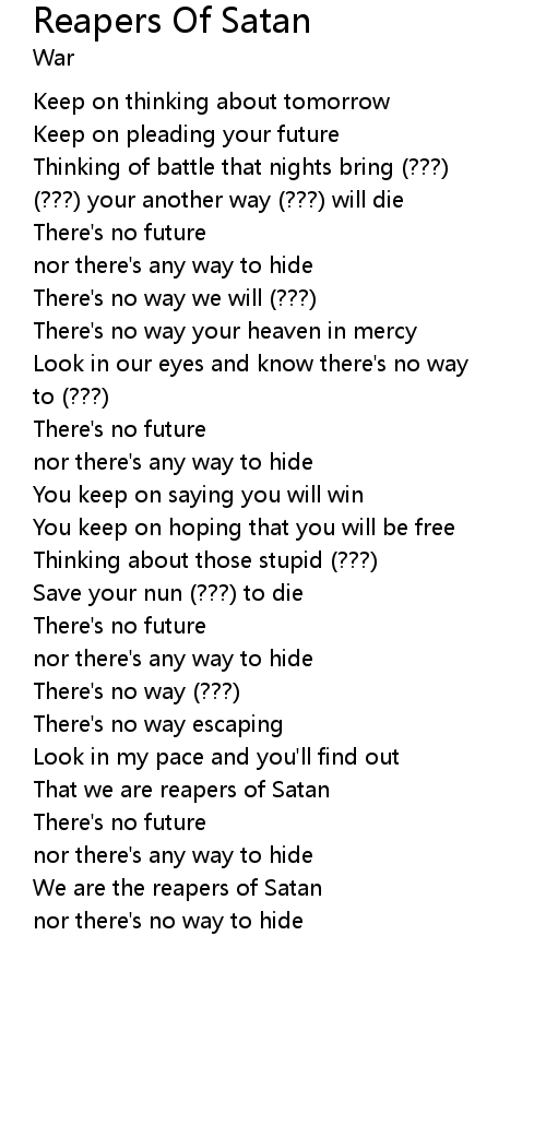 | We are the reapers of Satan | |