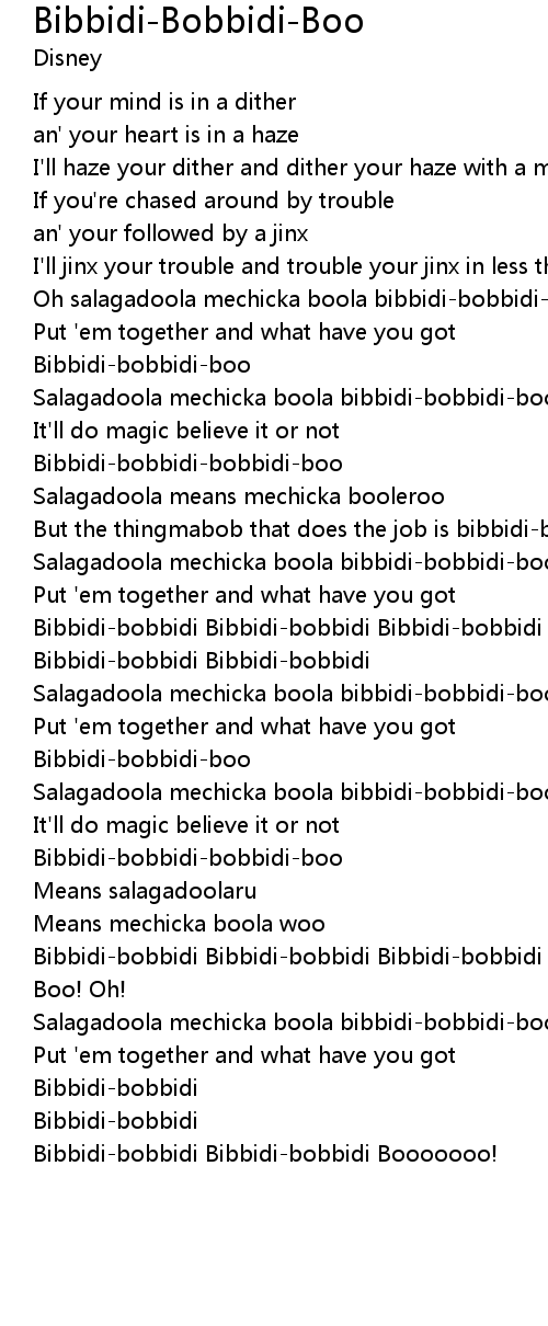 Bibbidi-bobbidi Bibbidi-bobbidi Bibbidi-bobbidi |