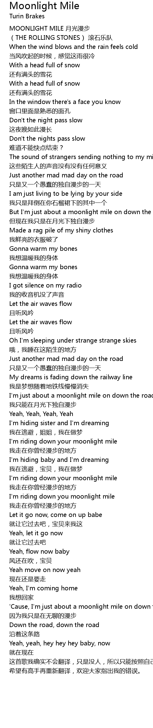 | I'm riding down your moonlight mile | |
