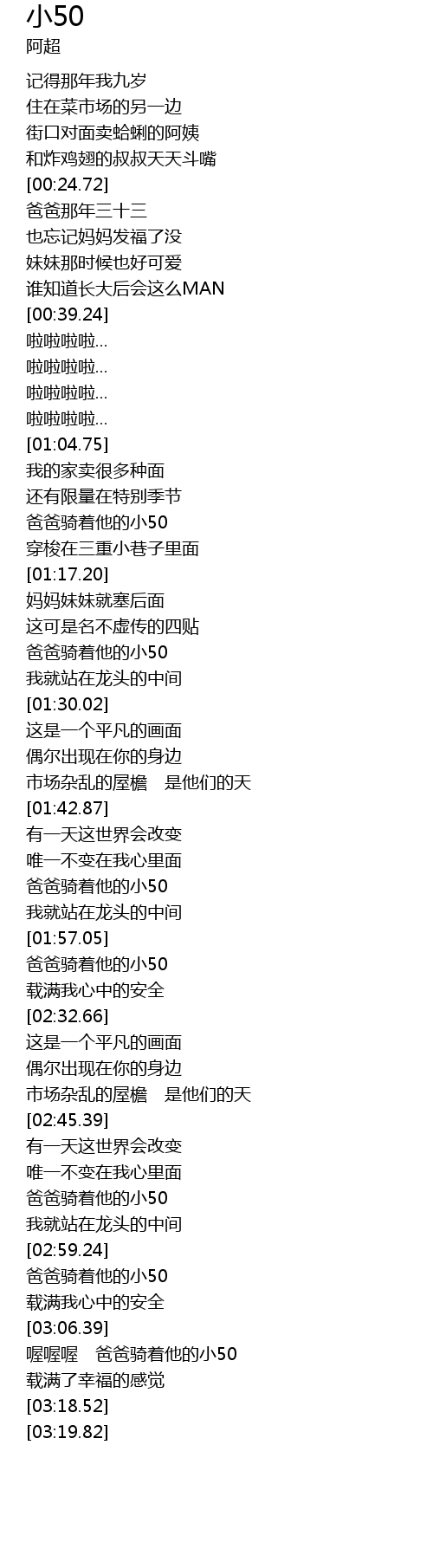 | [03:00.08] | 爸爸骑着他的小50 |