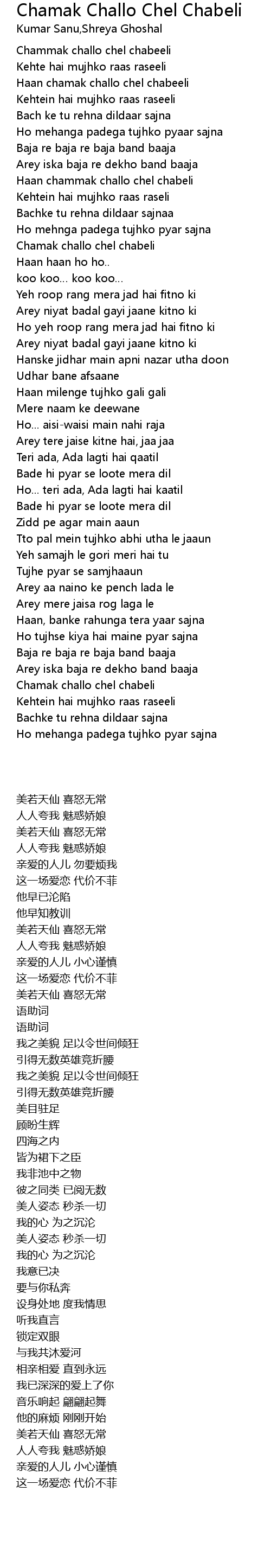 | [00:16.43] | Haan chamak challo chel chabeeli |
