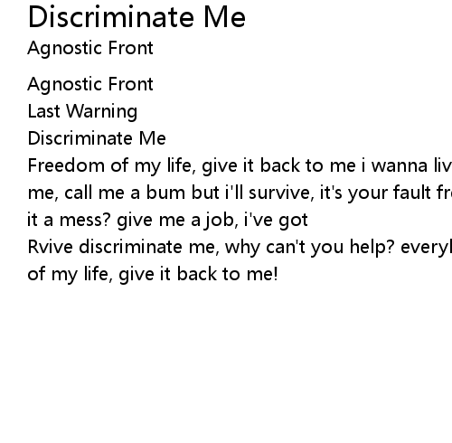 | Rvive discriminate me, why can't you help? everybody thinks i'm a scum freedom of my life, give it back to me! |