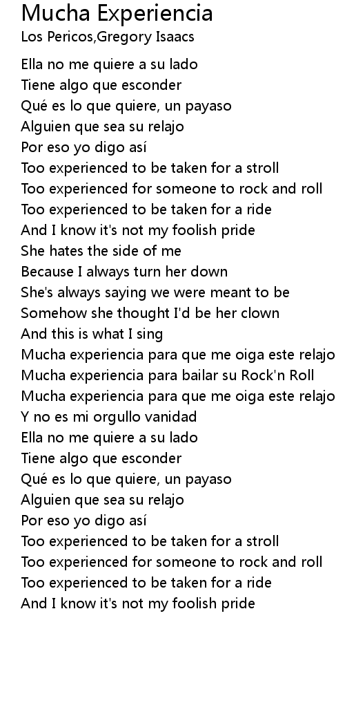 | Song | Mucha Experiencia |