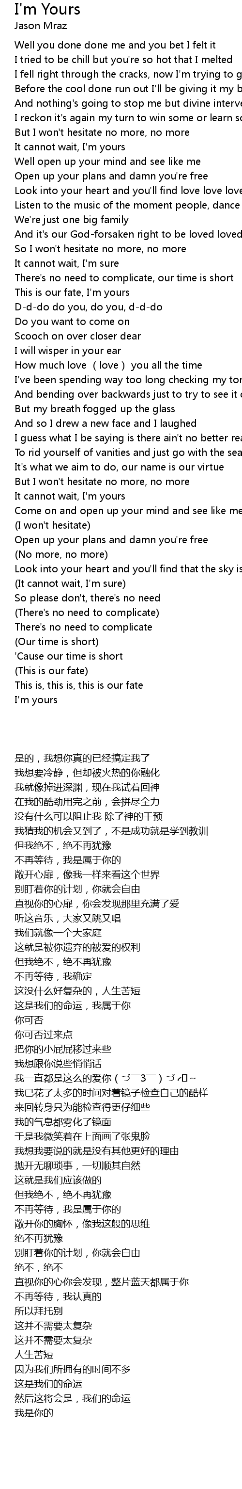 | [00:41.35] | It cannot wait, I'm yours |