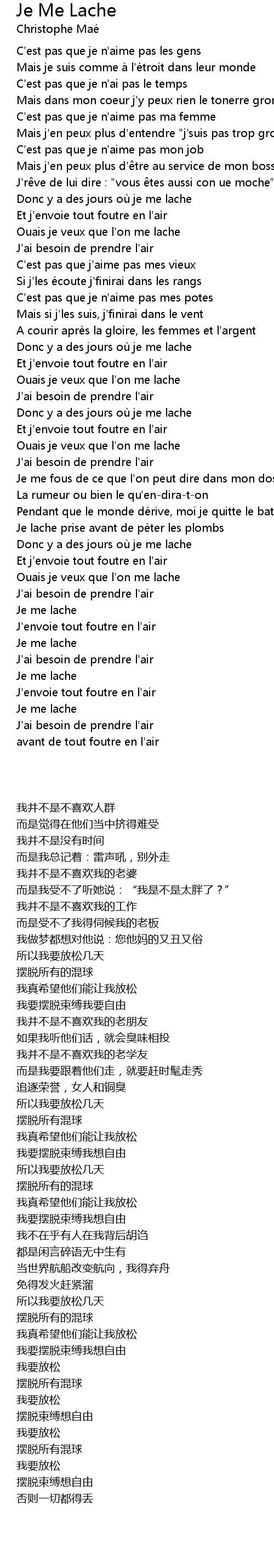 | [02:19.90] | Ouais je veux que l' on me lache |