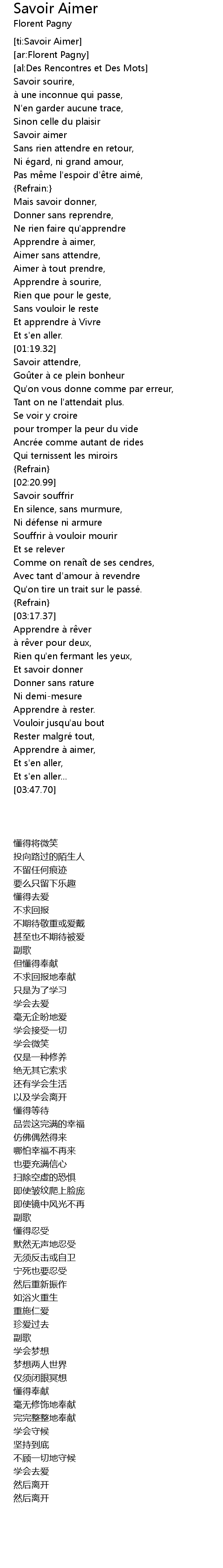 | [ti:Savoir Aimer] | |