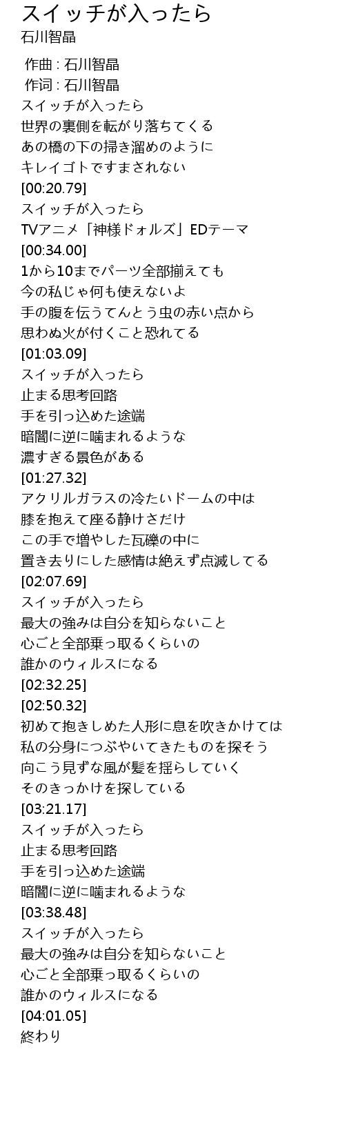 | [00:00.00] | スイッチが入ったら |