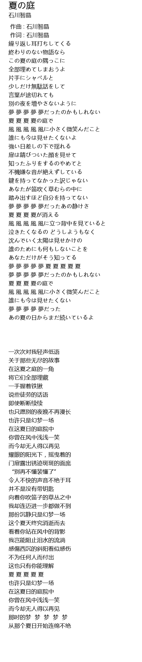 | [04:53.000] | 夏 夏 夏 夏の庭で |