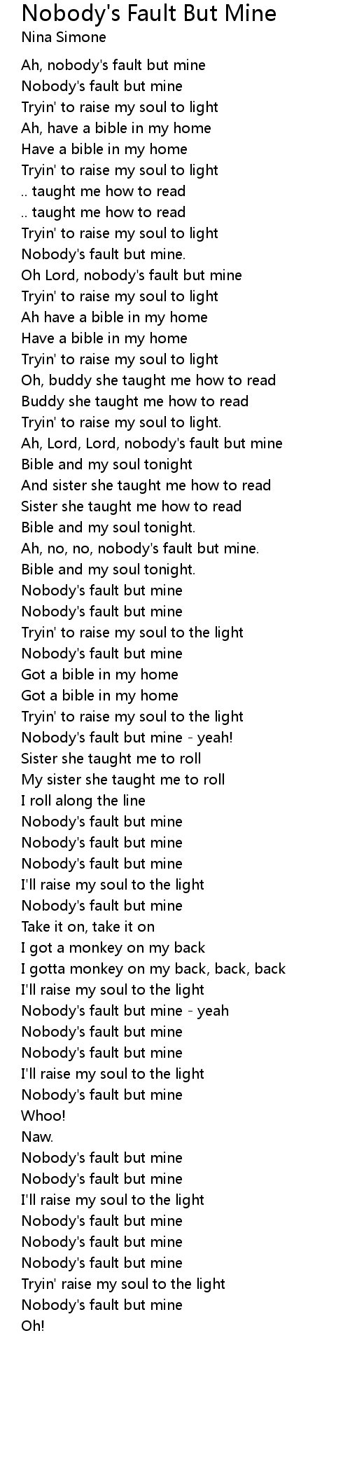 Nobody's fault but mine - yeah! |