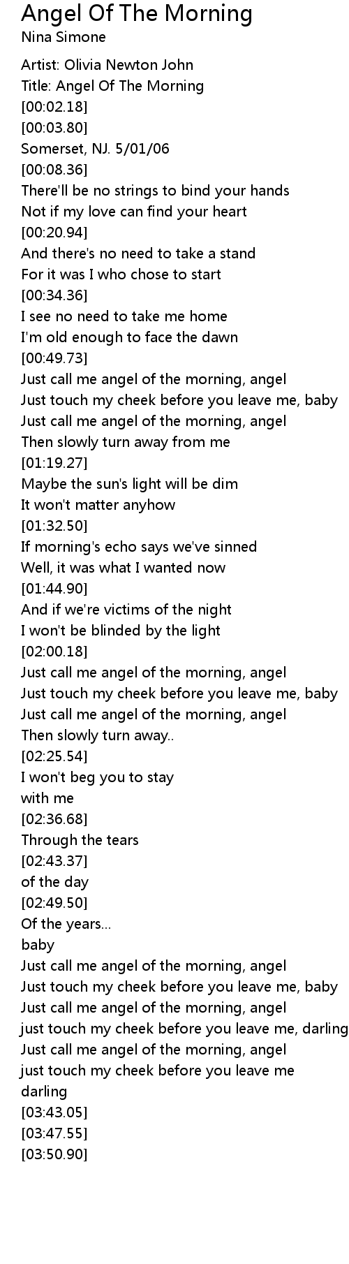 Title: Angel Of The Morning |