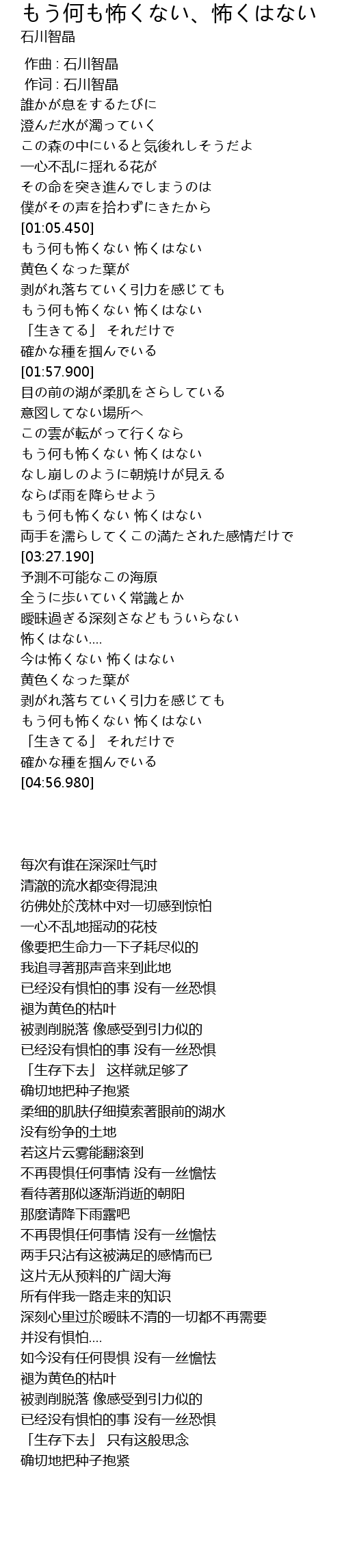 | [01:33.600] | もう何も怖くない 怖くはない |