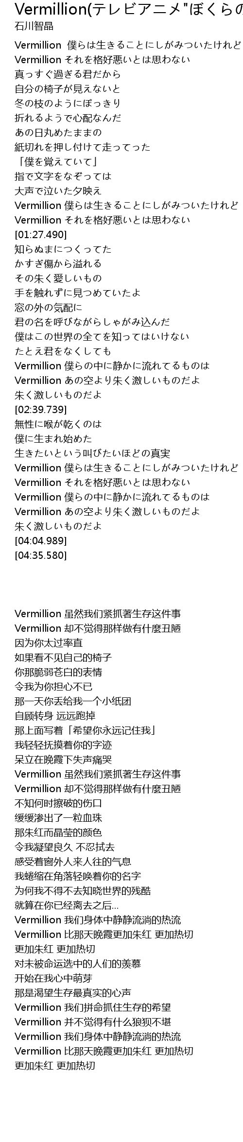 | [03:37.850] | Vermillion 僕らの中に静かに流れてるものは |