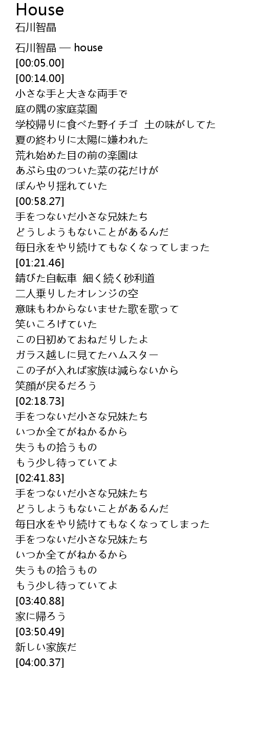 | [01:01.75] | 手をつないだ小さな兄妹たち |