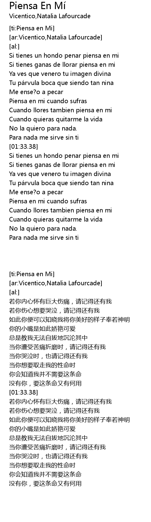 | [02:37.23] | Cuando llores tambien piensa en mi |