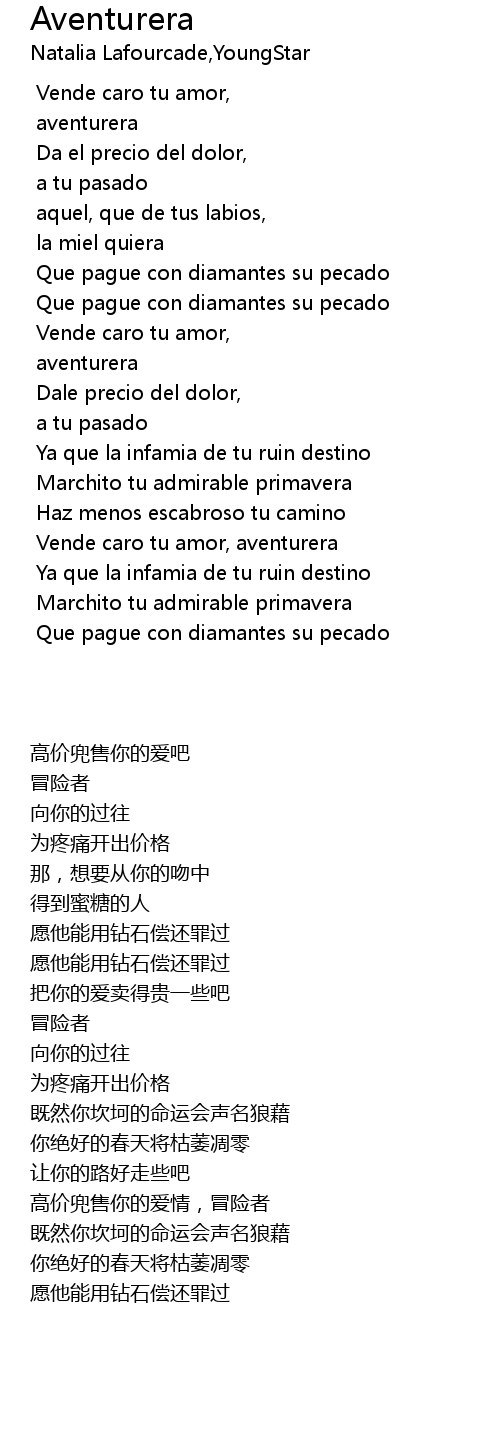 Vende caro tu amor, aventurera |