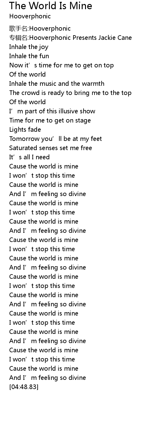 | [04:35.63] | Cause the world is mine |