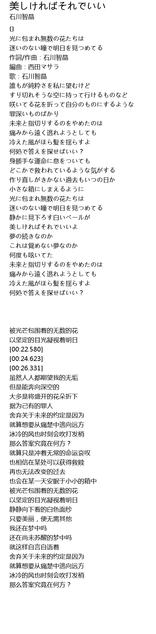 | [00:22.580] | 作詞/作曲:石川智晶 |