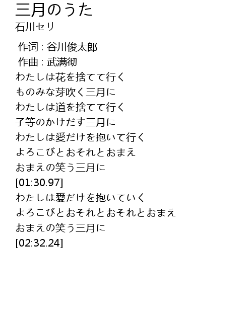 | [00:00.000] | 作词 : 谷川俊太郎 |