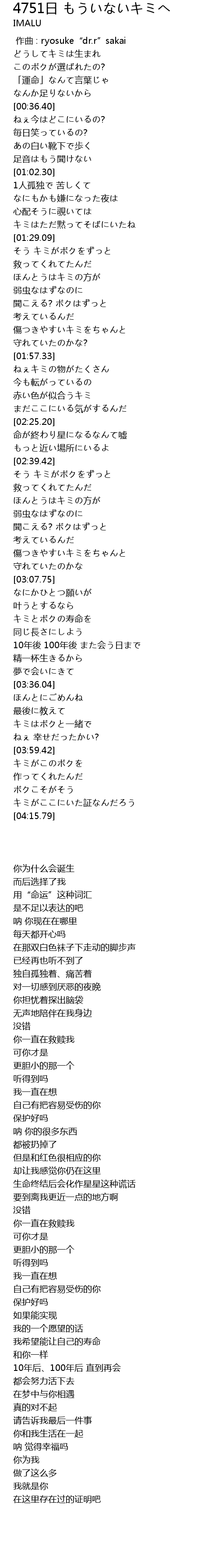 | Song | 4751日 もういないキミへ |