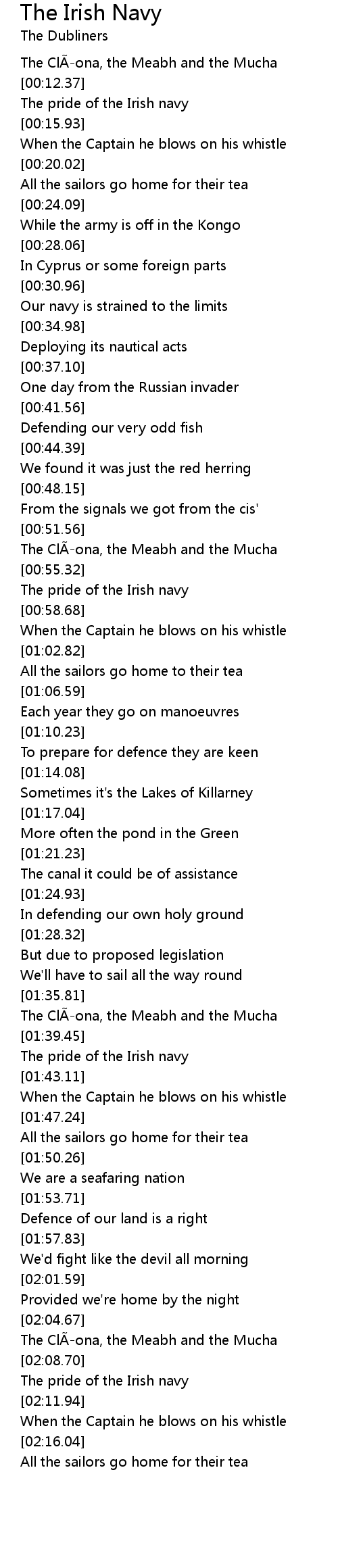 | [00:53.52] | The Cl ona, the Meabh and the Mucha |