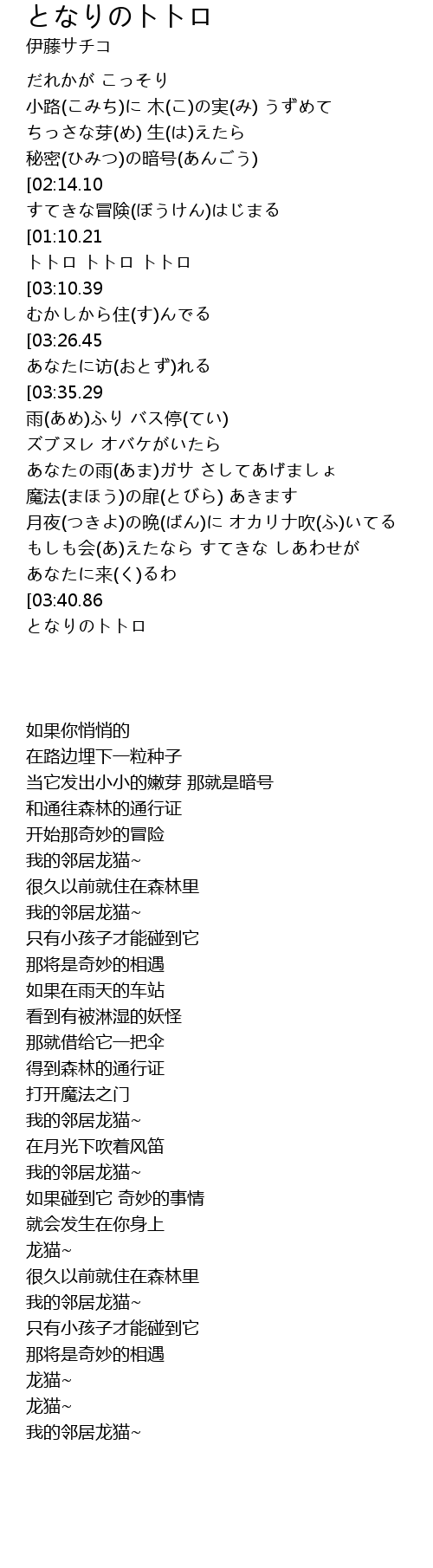 | [03:05.98][03:40.86][03:49.14] | トトロ トトロ トトロ トトロ |