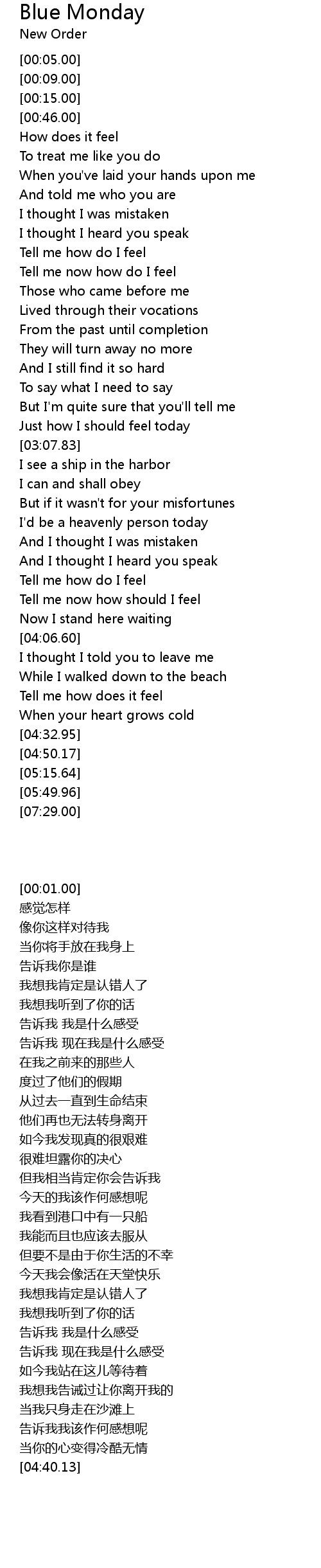Blue Monday Lyrics