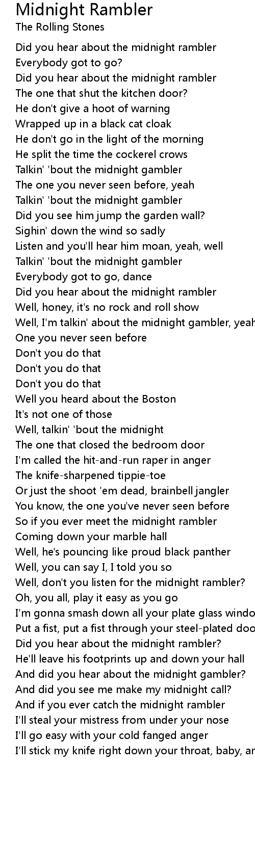 So if you ever meet the midnight rambler |