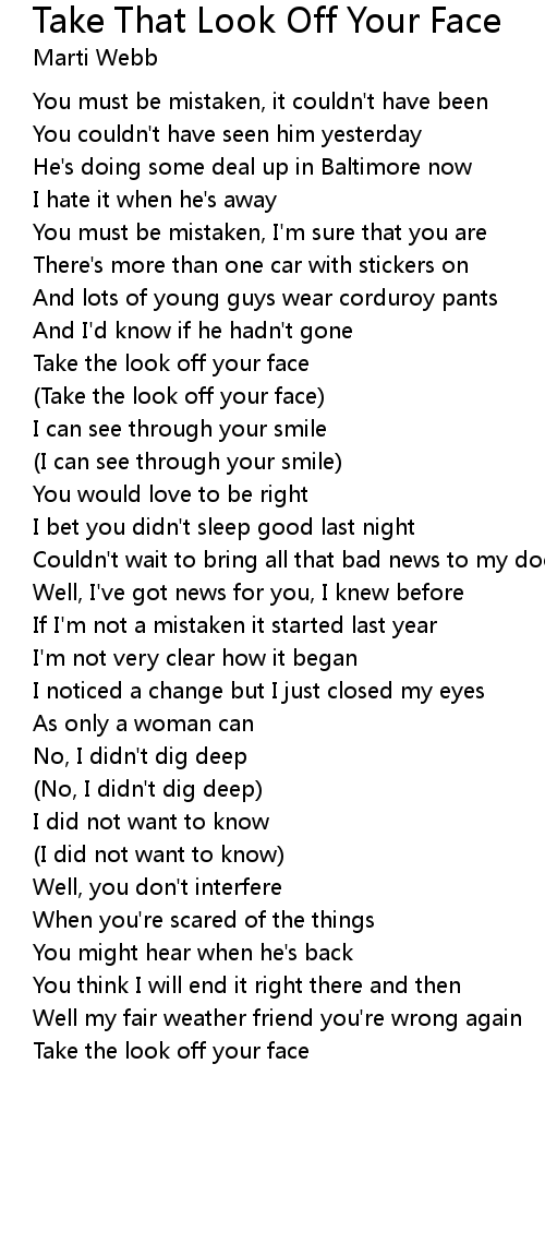(Take the look off your face) |