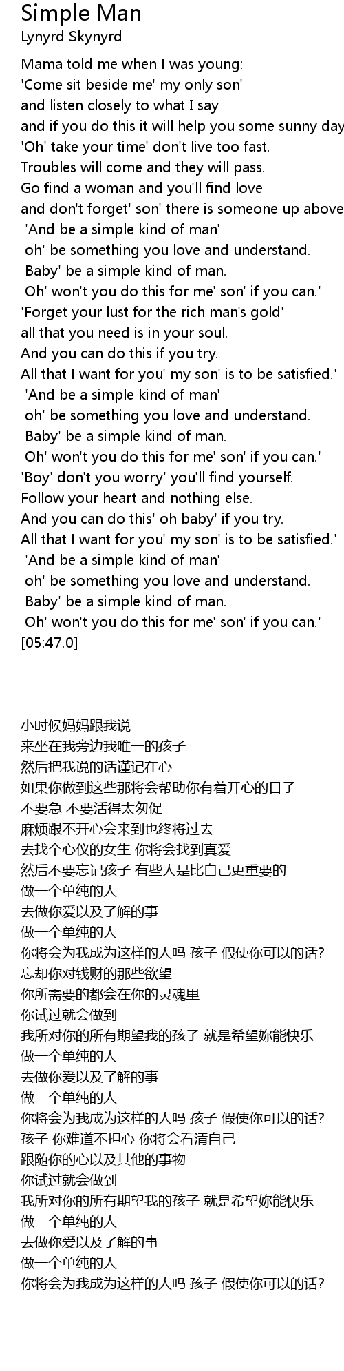 'And be a simple kind of man' |