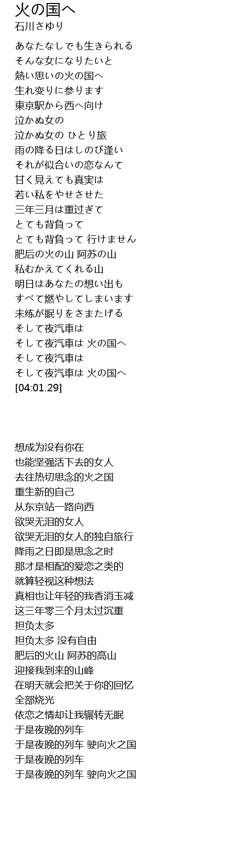 | [03:51.25] | そして夜汽車は 火の国へ |