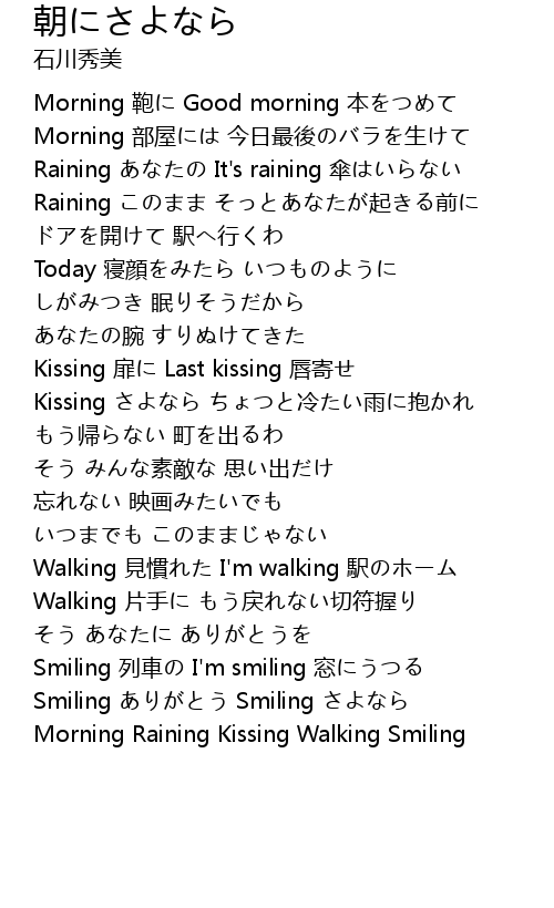 | [04:06.392] | Morning Raining Kissing Walking Smiling |