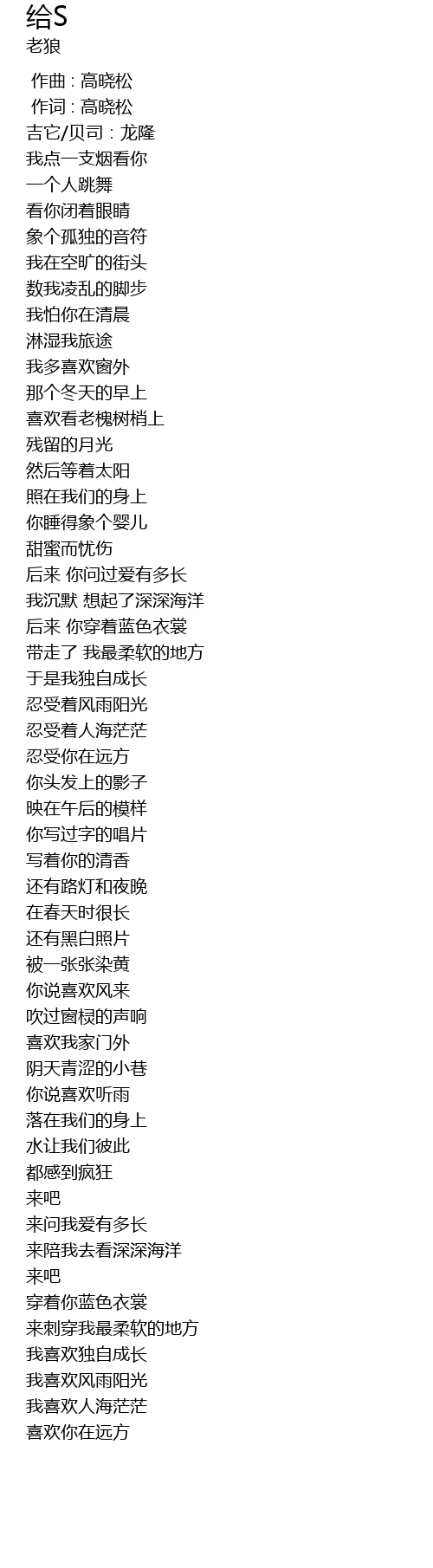 | [00:01.00] | 作词 : 高晓松 |
