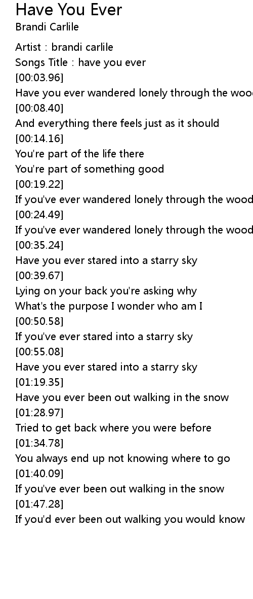| [00:05.09] | Have you ever wandered lonely through the woods |