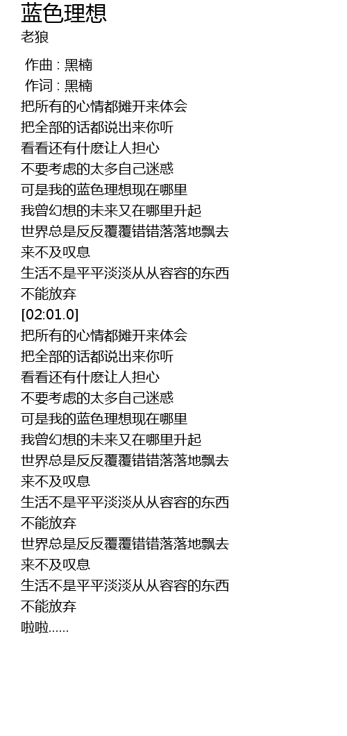 | [01:20.0] | 可是我的蓝色理想现在哪里 |