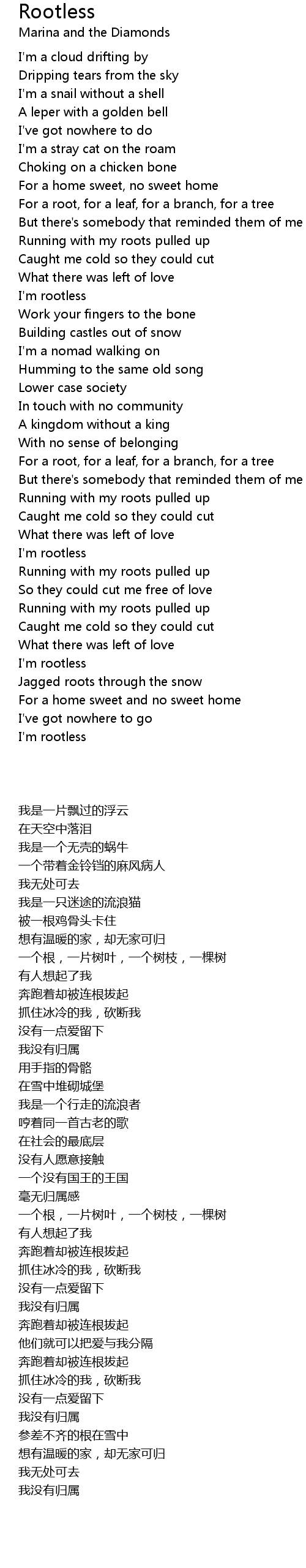 With no sense of belonging |
