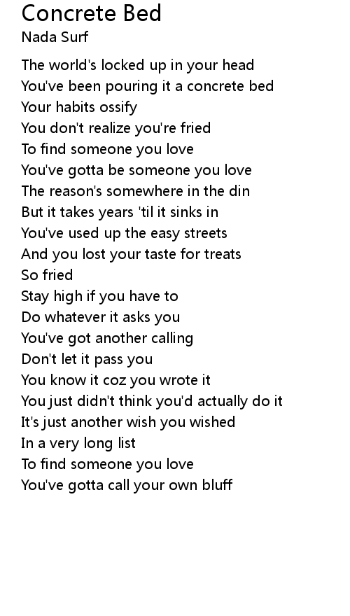 You've been pouring it a concrete bed |