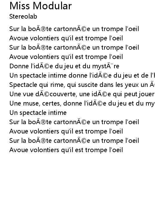 | Song | Miss Modular |
