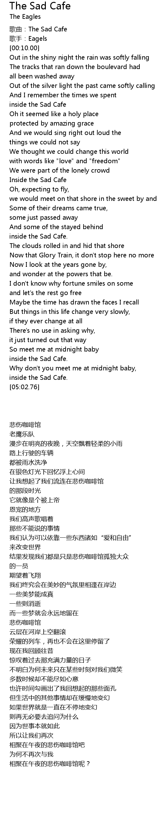 | [00:00.00] | 歌曲:The Sad Cafe |