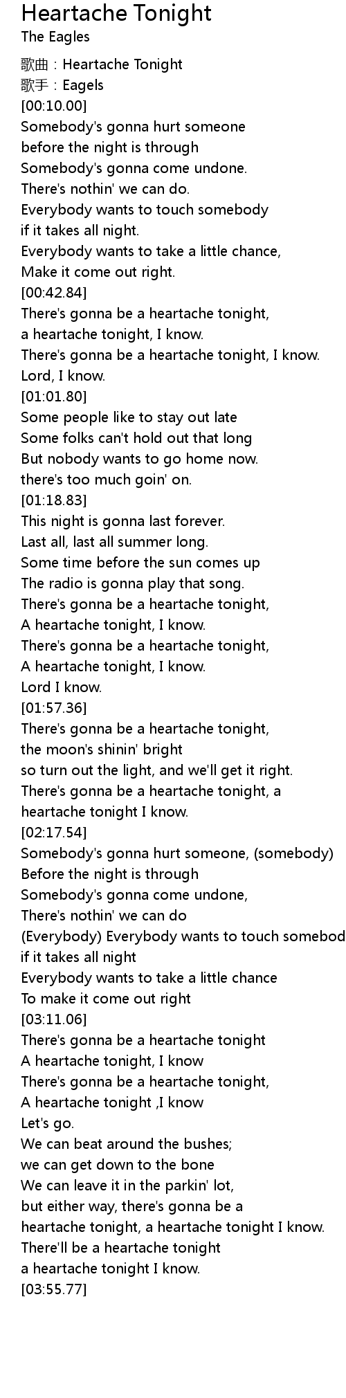 | [00:00.00] | 歌曲:Heartache Tonight |