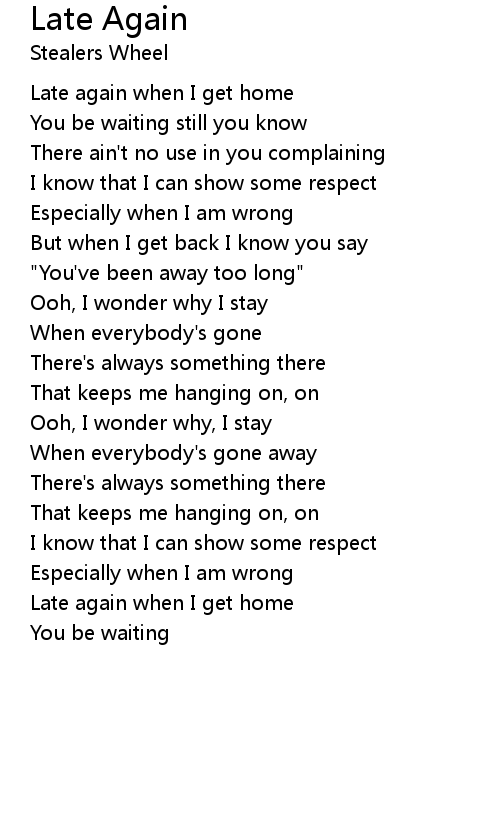 Late again when I get home |