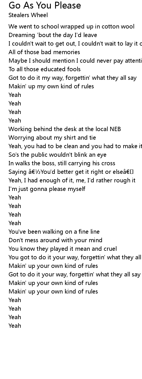 | Song | Go As You Please |