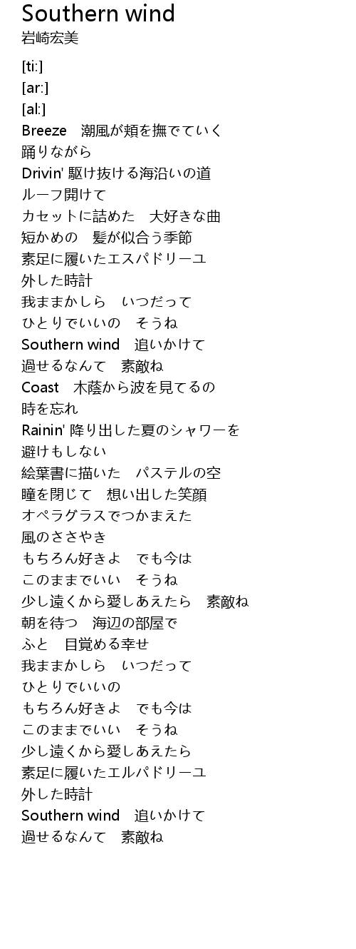 | [03:49.07] | Southern wind 追いかけて |