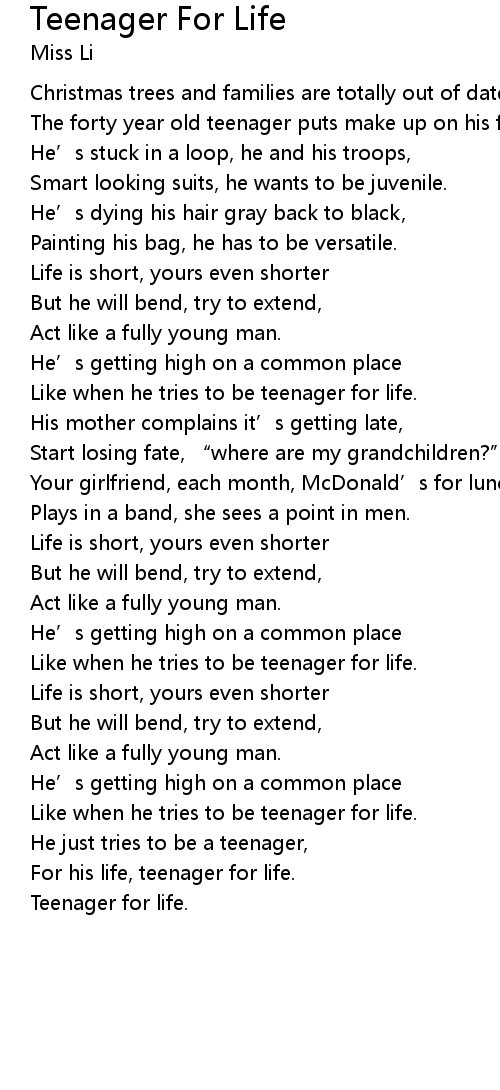 | Song | Teenager For Life |