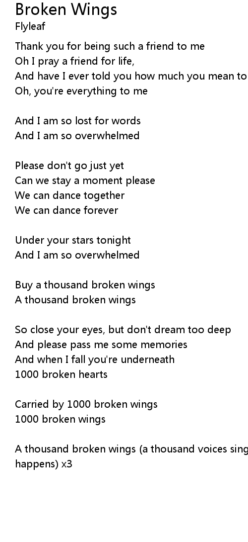 A thousand broken wings (a thousand voices singing reasons understanding why it happens) x3 |