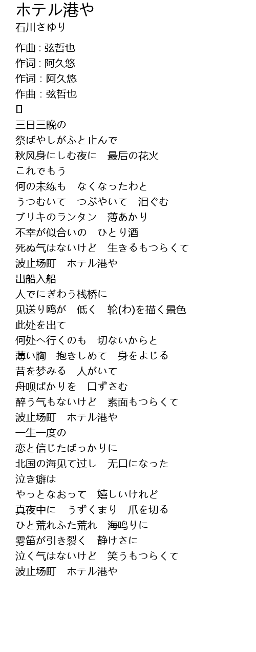 | Song | ホテル港や |