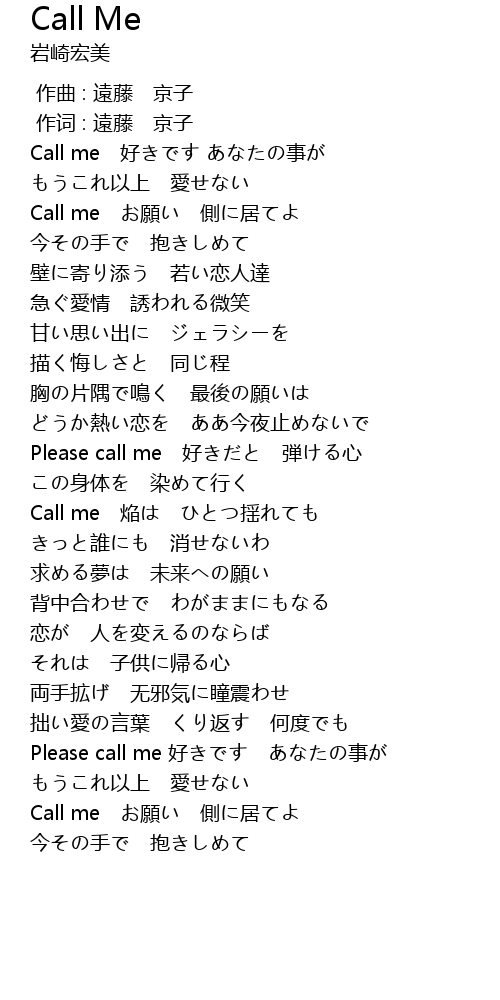 | [01:38.53] | Please call me 好きだと 弾ける心 |