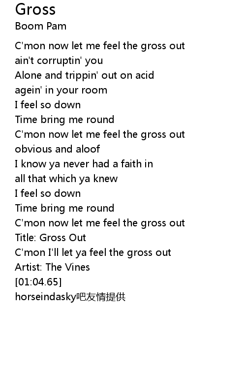 | [00:00.00] | C'mon now let me feel the gross out |