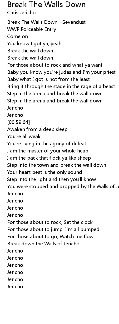 | [01:31.62] | You were stopped and dropped by the Walls of Jericho |